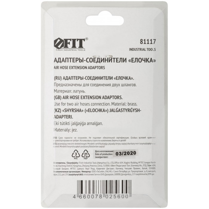 Адаптеры-соединители "елочка" 8 мм, латунь, 2 шт. (81117)