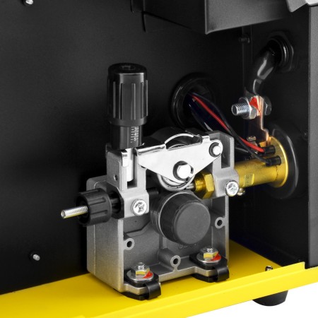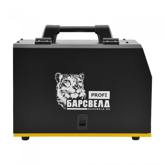Обновлённый Profi MIG 200 D приобрел яркий фирменный дизайн. Черный металлический корпус отлично выглядит, менее подвержен механическим загрязнениям. Даже при возникновении которых, его легко очистить. Яркая желтая лицевая панель выгодно смотрится на аппарате, при этом она отчетливо видна при любом освещении и в сварочной маске любого типа затемнения. Регуляторы и датчики смотрятся более контрастно, легко читаются.