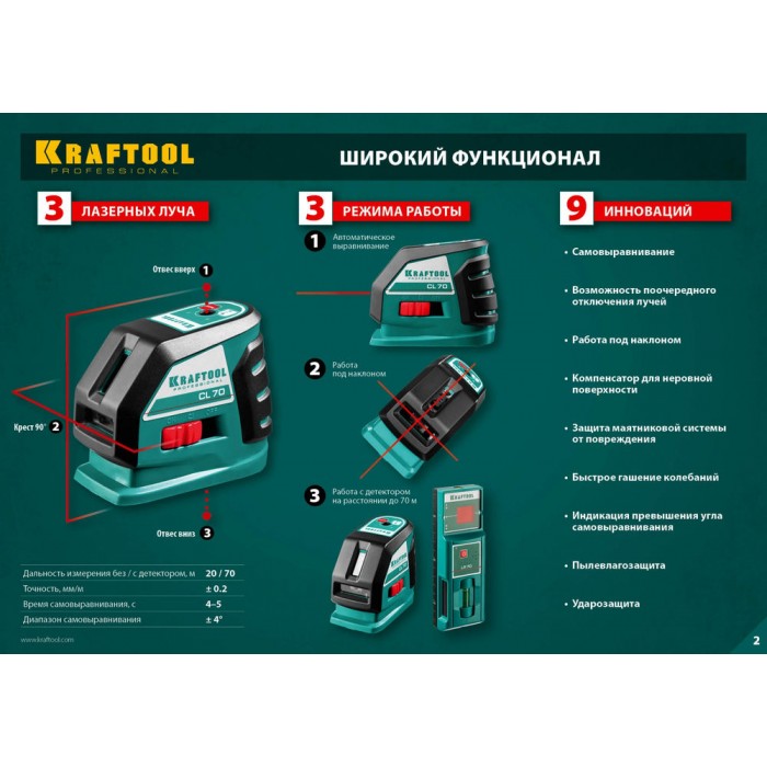 - Функция самовыравнивания устраняет необходимость настройки, гарантирует максимальную точность при разметке.