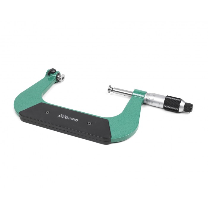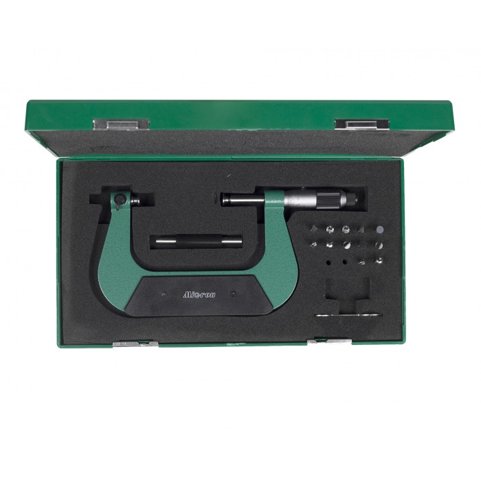 Микрометр универсальный МВУ-100 0,01 МИК - это многофункциональный контактный механический прибор, который позволяет точно, до сотых или тысячных долей миллиметра, измерять объекты небольших размеров. Это очень важно как для производства изделий, так и для контроля качества выпускаемой продукции.Принцип действия микрометра основан на движении винта, который располагается вдоль оси прибора в гайке, закрепленной неподвижно. Для сохранения максимальной точности показанаий, прибор имеет небольшой диапазон измерений, поэтому существуют достаточно много типоразмеров этого инструмента. К универсальному микрометру идет комплект съемных наконечников, каждый из которых используется в своей области:Гладкие вставки - для измерения плоских поверхностейМалые плоские вставки - для измерения труднодоступных мест (пазов, шлицов, шпоночных канавок и др.)Сферические вставки - для измерения вогнутых поверхностей (стенок труб, направляющих шариков)Дисковые вставки - для измерения мягких материзвийные вставки - алов (войлок, ткань, бумага, пластик, резина), а также труднодоступных местЛезвийные вставки - для измерения диаметров резьб и труднодоступных местКонуснообразные вставки - для измерения выточек, узких пазов и канавокТочечные вставки - для измерения расстояний в центрахИзмерения осуществляются по шкалам стебля и барабана микрометрической головки.Шкала инструмента имеет цену деления 0.01 мм и верхний предел измерений 100.Производство компании Micron.