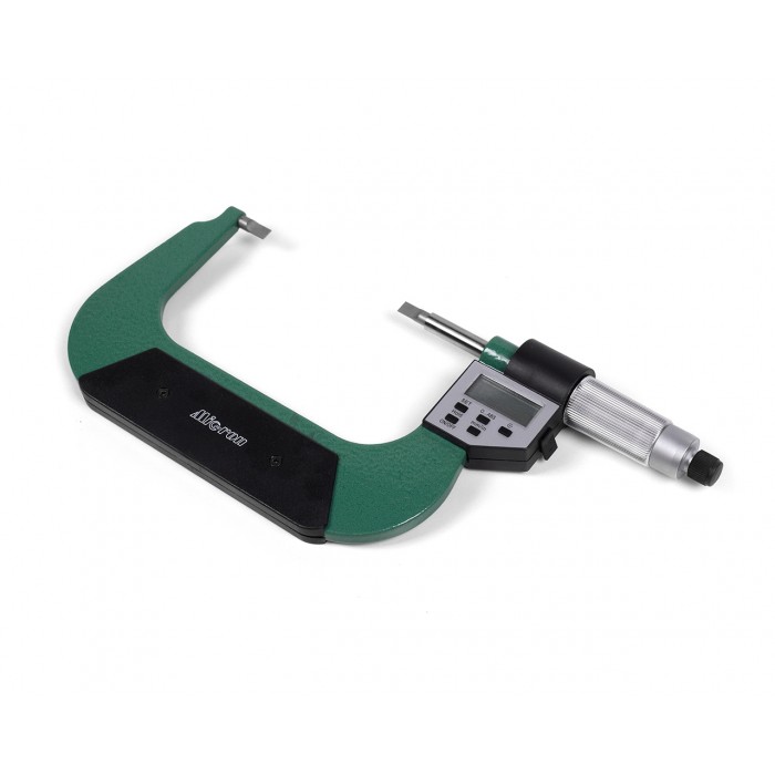 Микрометр лезвийный МКЦЛ-100 0,001 электр. МИК* - узкоспециализированный инструмент, применяемый для измерения диаметров наружных канавок. Этот тип микрометра более удобен по сравнению с гладким микрометром, так как специализированные лезвийные наконечники обеспечивают более сильное удельное давление на измеряемые поверхности.Показания снимаются с цифрового дисплея. Также можно быстро выставить прибор на «нуль» в любом месте шкалы, производить вычисления в миллиметрах и в дюймах. Инстрмент выполнен из качественных материалов, наконечники изготовлены из долговечных твердосплавных материалов и тщательно отшлифованы, скоба имеет теплоизолирующие накладки. Шкала инструмента имеет цену деления 0.001 мм и верхний предел измерений 100 мм. Производство компании Micron.
