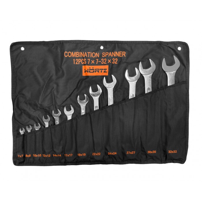 Набор комбинированных гаечных ключей HORTZ в сумке 7-32 (12шт) 1043645 используется в автомастерских, в гараже, на ремонтно-строительных площадках для обслуживания крепежа. Инструменты изготовлены из высококачественной хромованадиевой стали, которая делает их прочными и долговечными. Каждый ключ имеет свое отделение в специальном чехле, что обеспечивает удобный доступ во время работы и бережное хранение инструмента.