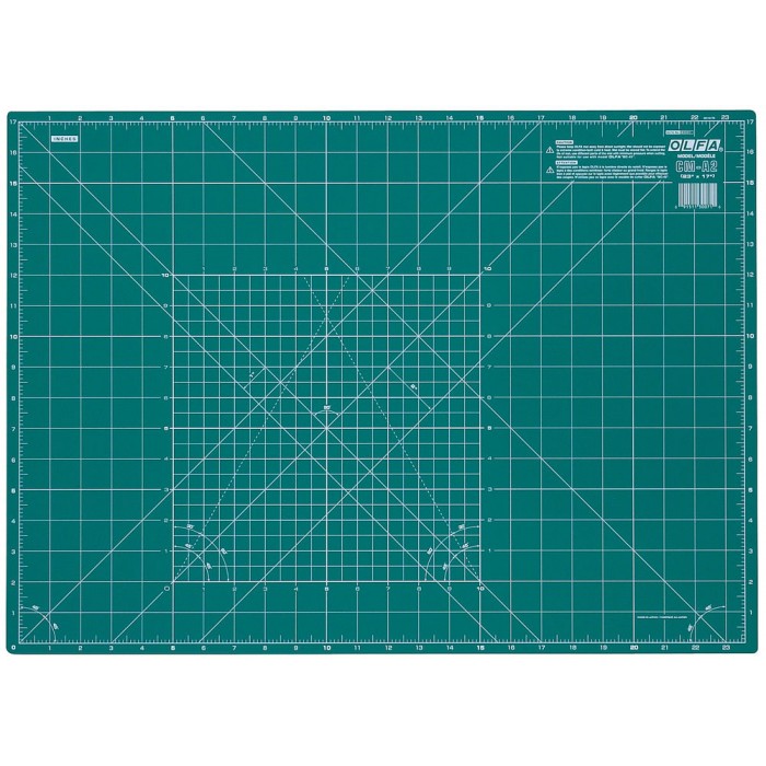 Универсальный двусторонний коврик OLFA CM-A2 — отличное решение для повышения эффективности реза. Приспособление имеет метрическую сетку с одной стороны и дюймовую с другой для удобства в работе. Предназначен для использования со стандартными, художественными, дисковыми и специальными ножами OLFA. Коврик необходимо хранить на ровной поверхности для предотвращения деформации.