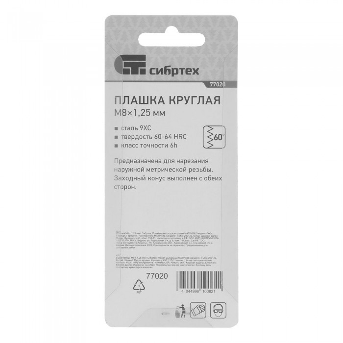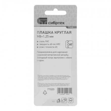 Плашка М8 х 1.25 мм Сибртех