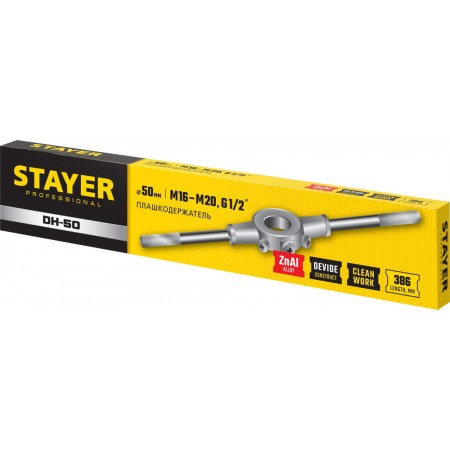 Предназначен для жесткой фиксации плашек размером 50мм при ручных резьбонарезных работах. Для получения наилучших результатов и снятия общей наргузки, рекомендуется при нарезании резьб использовать смазывающие материалы.