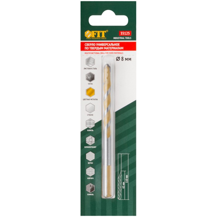 Для безударного сверления листовой стали, чугуна, цветных металлов, стекла, керамической плитки и керамогранита. Для ударного сверления бетона, кирпича, гранита, мрамора и камня. Сверление в стекле и керамической плитке должно быть аккуратным и непродолжительным. Подача воды необходима при сверлении стекла, мрамора, камня, чугуна, керамической плитки и керамогранита. Трехгранный хвостовик. Материал: корпус из легированной стали 40Cr, режущая вставка из карбида вольфрама ВК8С. Упаковка: блистер.