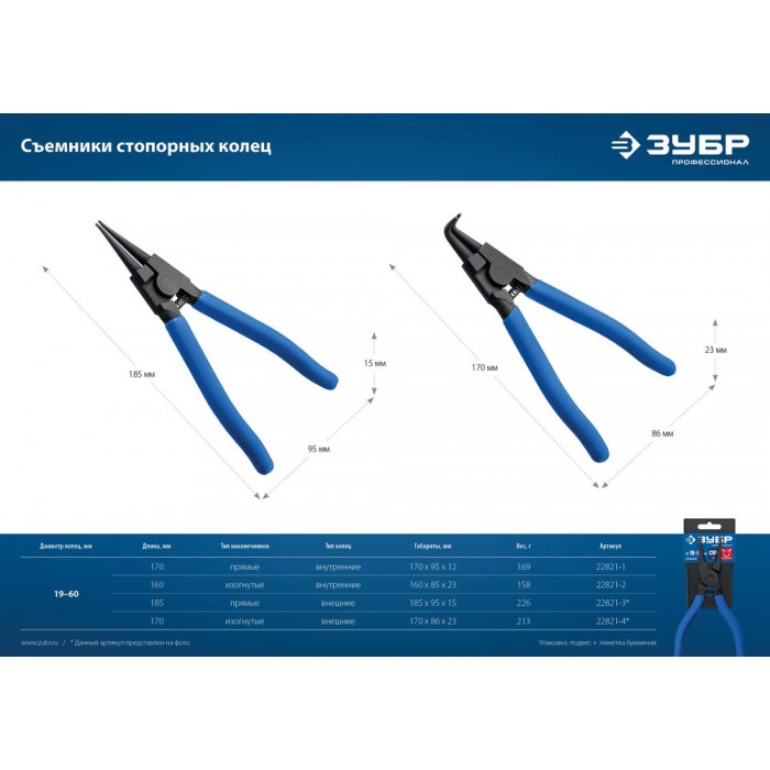 Профессиональные съемники стопорных колец изготовлены из кованой хромованадиевой стали со специальным покрытием, защищающим от коррозии