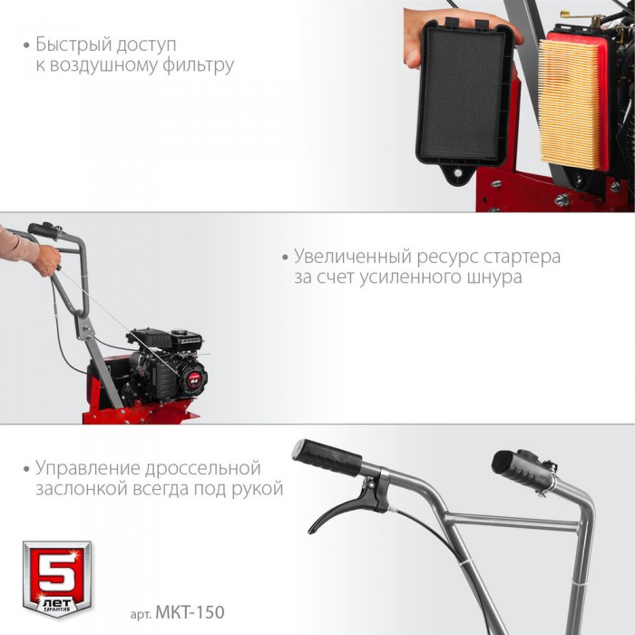 - Рукоять культиватора с возможностью регулировки по вертикали делает управление более комфортным