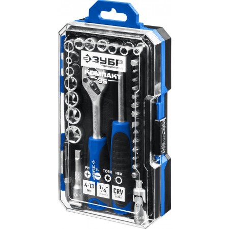 Универсальный набор инструмента 35 предм. Профессионал ЗУБР Компакт-35 27642-H35